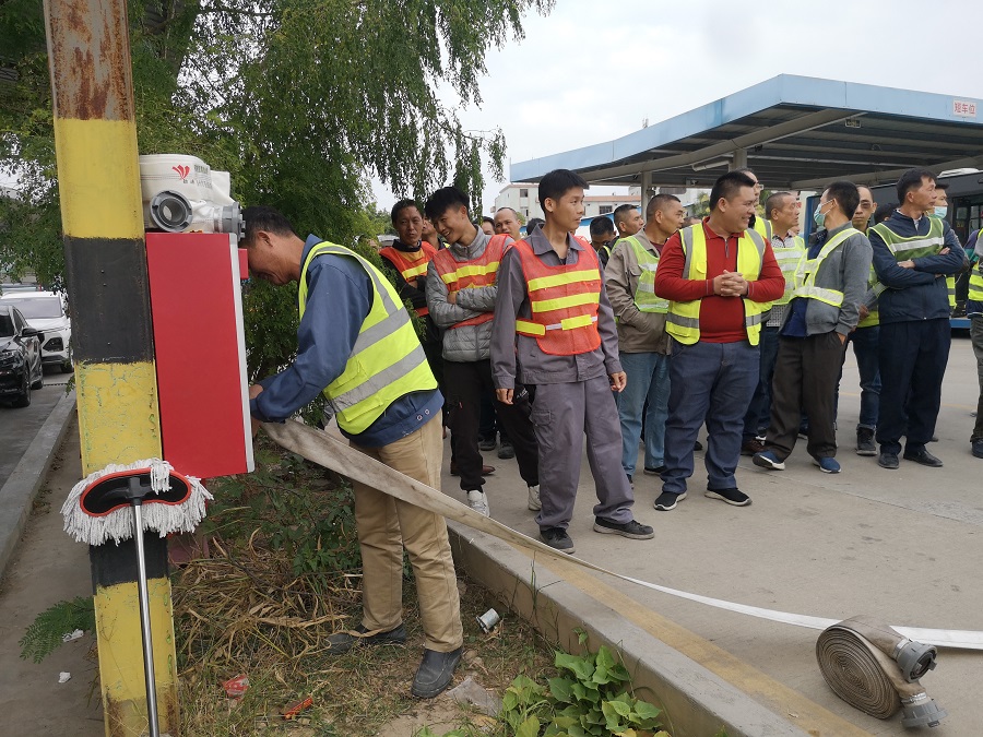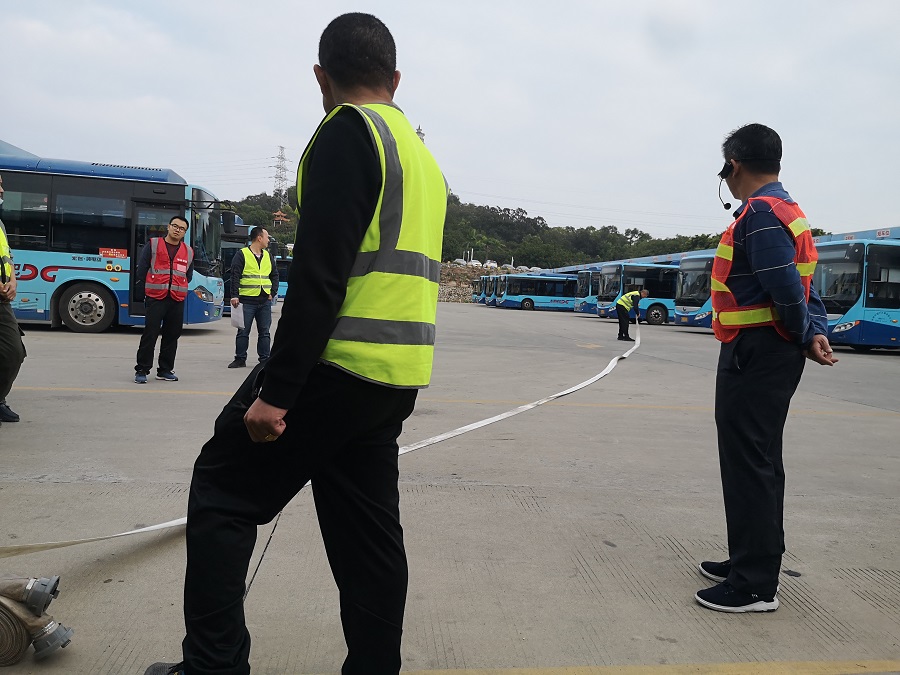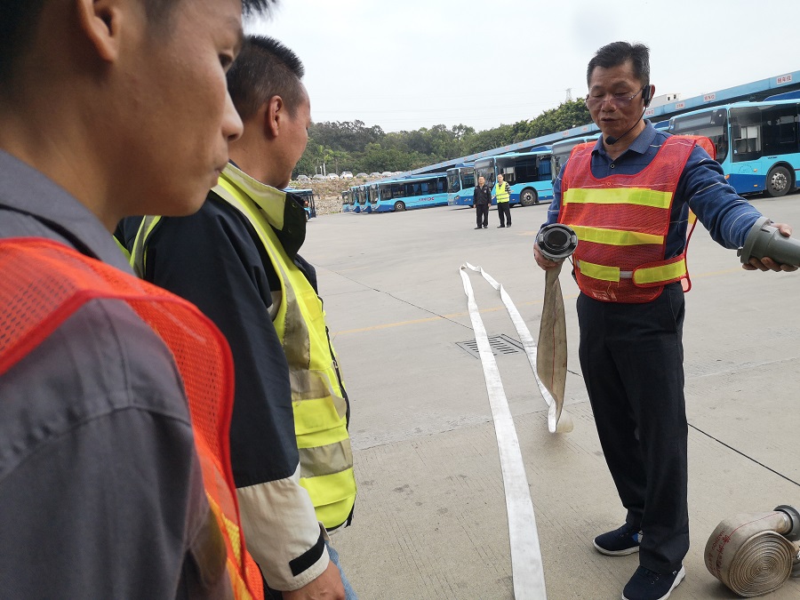 3)著重于消防栓全員培訓(xùn),使其能快速掌握使用。由下漕擺渡司機(jī),退伍消防兵廖曉東為全體充電員及擺渡司機(jī)講解消防栓、消防槍頭、拋水帶、水帶的接駁、演練使用方法,并對全員的實(shí)操進(jìn)行講解及點(diǎn)評;